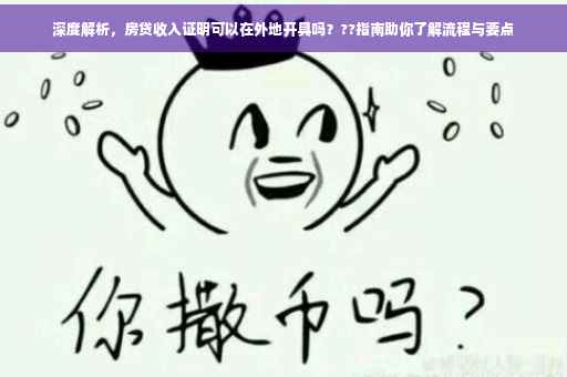 摘要:本文深度解析了房贷收入证明外地是否可行的相关问题。文章指出,在申请房贷时,收入证明是非常重要的材料之一,而对于在外地工作或者居住的人来说,开具外地收入证明是可行的。但需要注意,不同地区、不同银行对于收入证明的要求和规定可能存在差异,建议在申请前咨询银行或相关部门,以确保材料的真实有效。