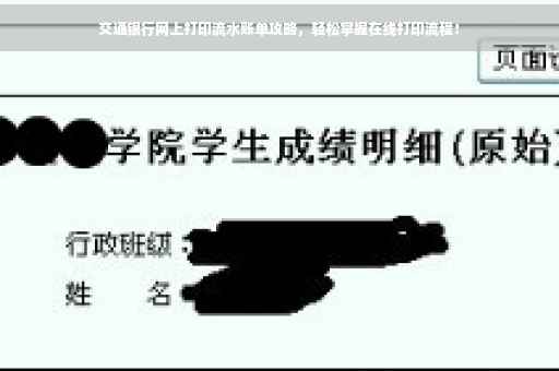 摘要:想要在网上打印交通银行流水账单,首先登录交通银行官网,进入个人账户。随后选择账单查询功能,选择需要打印的账单时间段。确认无误后,点击打印按钮即可生成流水账单。此攻略提供简单步骤,方便用户快速获取并打印流水账单。