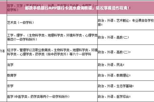 通过邮政手机银行APP查询银行卡流水是一项非常便捷的功能,掌握这一操作,你可以随时随地查看自己的交易记录,更好地管理财务,在使用过程中,请注意保护个人信息和账户安全,定期更新APP,确保金融安全,如有任何问题,请及时联系银行客服,希望本文能帮助你顺利使用邮政手机银行APP查询银行卡流水,享受便捷的移动金融服务。