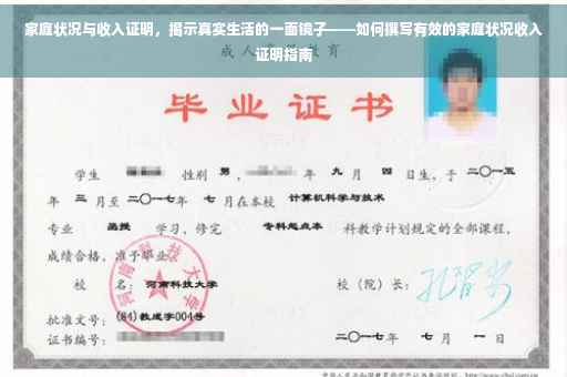 收入证明是家庭状况证明中至关重要的一部分,它反映了家庭的经济实力和财务状况,在贷款申请、房屋租赁、工作应聘等场合,收入证明往往决定着家庭是否能够获得所需的资源或机会,撰写一份真实、详细、规范的收入证明至关重要。