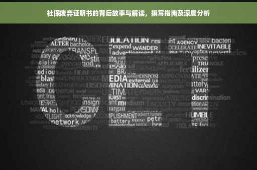 摘要:本文将探讨社保废弃证明书的背后故事和写法。这份证明涉及到社保事务的终止或变更,背后可能涉及到个人或企业的权益保障问题。本文将深度解读社保废弃证明书的含义和用途,并指导如何撰写该证明,包括关键信息和注意事项。让读者了解如何妥善处理社保事务,维护自身权益。