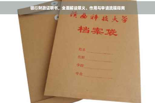 随着金融领域的快速发展,银行财政证明书作为一种重要的金融证明文件,其重要性日益凸显,本文将全面解析银行财政证明书的概念、作用,以及申请流程,帮助公众更好地了解和使用这一金融工具。