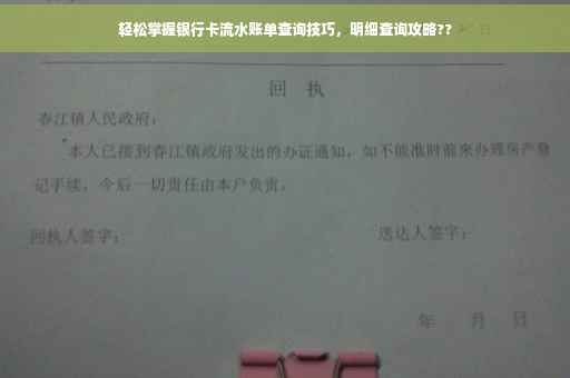 通过本文的阐述,相信大家对如何查询银行卡流水账单已经有了充分的了解,在实际操作中,我们要注意保护个人信息,确保安全查询,同时关注个人财务状况,发现异常及时处理,让我们一起努力,实现财务自由!