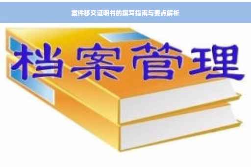 摘要:,,本文是关于如何撰写案件移交证明书的简要指南。案件移交证明书是用于将一件案件的管辖权从一个机构转移到另一个机构的重要文件。其内容应简洁明了,包含案件的基本信息、移交原因和接收机构。移交证明书应明确列出案件的关键细节,如案件编号、当事人信息、案件性质及进展,并说明移交的原因和接收机构的名称。撰写时需注意格式规范、语言准确,确保信息的完整性和准确性。