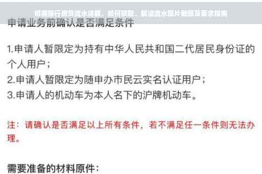 摘要:招商银行房贷流水获取与解读方法揭秘。借款人可通过银行渠道获取房贷流水图片截图,并关注流水中的关键信息如交易金额、时间等。解读流水需注意资金稳定性与连续性,以评估个人还款能力。获取并正确解读流水有助于借款人满足银行房贷要求,顺利申请贷款。