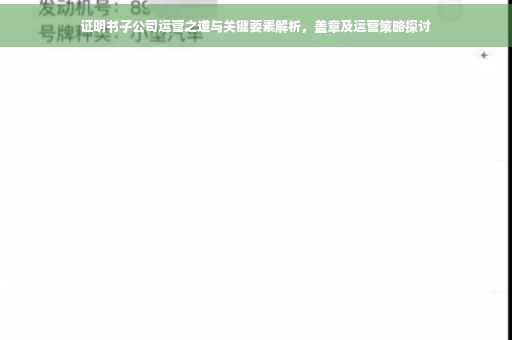 证明书子公司在企业运营中发挥着重要作用,通过提供专业的证明服务,帮助企业提升品牌形象和市场竞争力,本文详细解读了证明书子公司的含义、运营之道以及关键要素,希望读者能更好地了解这一模式,并为相关企业提供有益的参考。