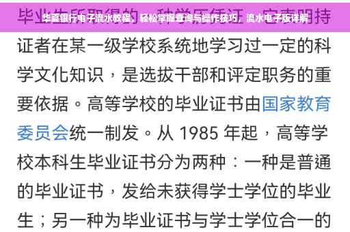 华夏银行电子流水视频教程,旨在帮助用户轻松掌握电子流水的查询与操作技巧。通过本教程,您将学会如何查询和获取电子版流水,方便快捷地管理您的财务。视频教程简洁易懂,适合广大用户学习使用。