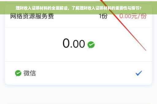 摘要:本文详细解释了理财收入证明材料的相关内容。理财收入证明材料是用于证明个人或企业从理财投资中所获得的收入情况的文件。文章将介绍理财收入证明材料的种类、用途以及获取方式,帮助读者了解如何准备和提供这些材料,以便在财务申请、税务申报等场合使用。