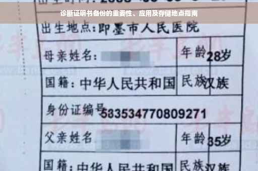 在当今社会,随着医疗行业的快速发展,诊断证明书在各个领域的应用越来越广泛,诊断证明书是医生对病人病情及治疗效果的客观记录,具有法律效力,对于患者维权、保险理赔、工作请假等方面具有重要意义,由于各种原因,诊断证明书丢失或损坏的情况时有发生,诊断证明书备份显得尤为重要,本文将详细介绍诊断证明书备份的重要性及实际应用。