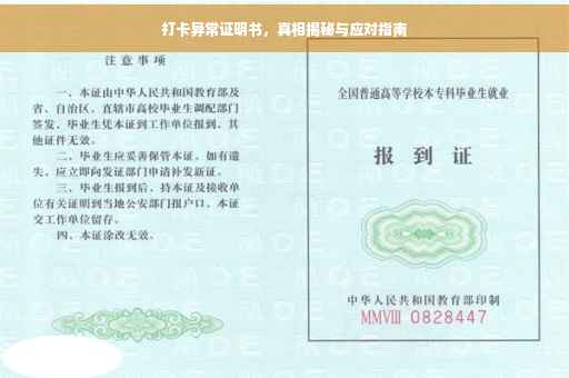 摘要:,,本文介绍了打卡异常证明书的撰写方式,同时揭示了打卡异常背后的真相及应对之策。内容主要围绕打卡异常的识别、原因剖析、解决方案等方面展开。通过本文,读者可以了解如何正确书写打卡异常证明书,并学会如何应对和解决打卡异常问题。摘要字数控制在100-200字之间。