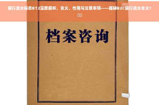 银行流水标志BT2通常指的是一种特定的交易标识,在银行业务中具有一定的含义,BT2通常表示某种特定类型的交易,如转账、取款、存款等,这一标志的存在,有助于银行和客户之间更清晰地识别和理解交易记录。