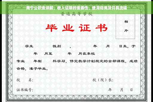 摘要:本文将详细介绍南宁公积金的相关知识,包括其用途、申请流程等。同时强调收入证明在公积金申请中的重要作用,提供收入证明的使用指南,包括如何开具收入证明的具体步骤和注意事项。阅读本文,有助于了解南宁公积金及收入证明的相关知识,顺利办理公积金业务。
