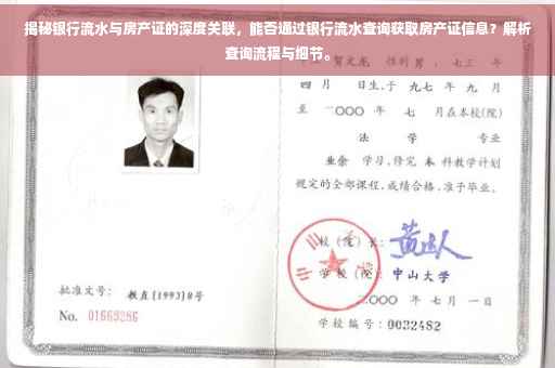 但在特定情况下,如办理房贷时,银行可能会要求借款人提供房产证以核实其房产情况,银行可能会通过内部系统或联系相关政府部门进行房产信息的核实,但这并不意味着通过银行流水可以直接查询到房产证信息。