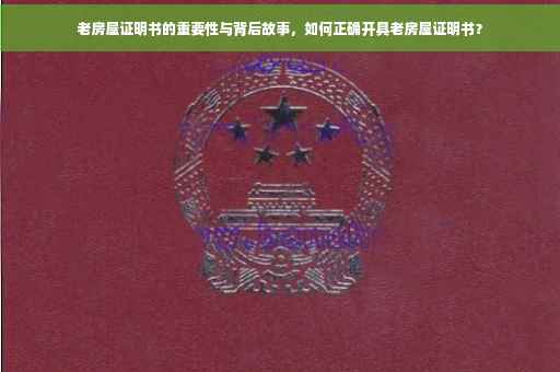 老房屋证明书是一份重要的法律文件,它详细记录了房屋的历史沿革、权属关系、建筑年代等关键信息,在房屋交易、拆迁补偿、遗产继承等场合,老房屋证明书具有重要的实际意义和法律意义,它不仅能够证明房屋的权属关系,避免产权纠纷,还能为房屋的价值评估提供参考依据,老房屋证明书还有助于保留城市的历史文化记忆,保护传统建筑和历史文化遗址。