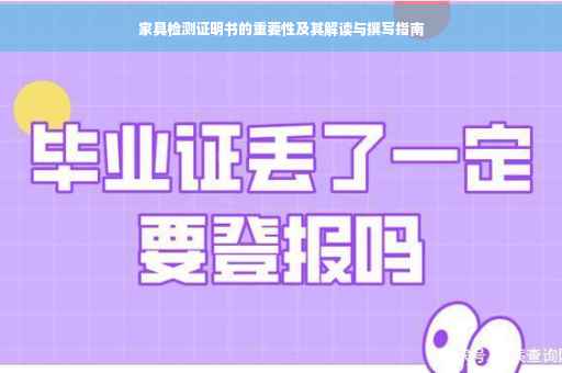 摘要:家具检测证明书对于确保家具质量、保障消费者权益具有重要意义。检测证明书通常包含品牌、型号、规格、检测项目、检测结果及结论等内容。本文深度解读了家具检测证明书的撰写要点,包括证书的真实性、检测标准的严格执行以及结果的准确性等,旨在让消费者了解家具检测的重要性并正确使用检测证明书。