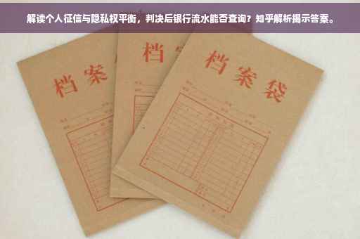 判决后,银行流水记录是可以查询的,但这需要在法律允许的范围内进行,并遵循个人征信与隐私权之间的微妙平衡。个人征信是重要的信用评估依据,而银行流水是征信的一部分。在涉及法律诉讼或执行过程中,有权机关可以依法查询个人银行流水。但个人隐私权也应受到尊重和保护,查询银行流水需遵循法定程序,确保合法合规。
