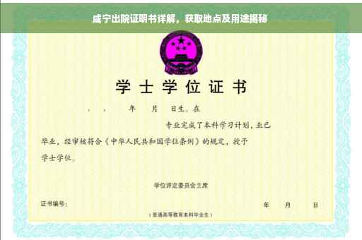 咸宁出院证明书是患者出院后的重要证明文件,对于保险理赔、后续治疗等方面具有关键作用,本文详细介绍了咸宁出院证明书的功能、内容、办理流程以及注意事项,希望能帮助患者及其家属更好地了解和使用咸宁出院证明书,如仍有疑问,建议咨询医院相关部门,以便获得更准确的解答。