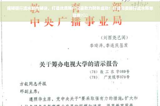 揭秘银行流水账单制作秘诀,打造优质账户记录助力财务成功!通过掌握正确的方法和技巧,轻松制作清晰、规范的银行流水账单。掌握账单细节,合理规划资金流动,呈现良好的财务状况。良好的银行流水账单对于个人信用评估、贷款申请等至关重要。快来了解如何制作出色的银行流水账单,为个人财务发展助力!