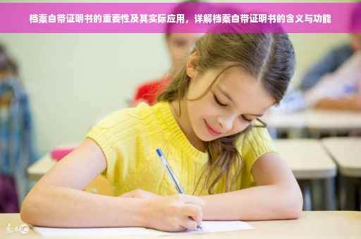 在当今社会,随着信息化的发展,档案自带证明书在我们的生活和工作中扮演着越来越重要的角色,一份完整、准确的档案自带证明书,不仅是我们个人身份、学历、工作经历等的有效证明,更是我们在社会活动中开展各种事务的必备凭证,本文将详细介绍档案自带证明书的重要性及其实际应用。