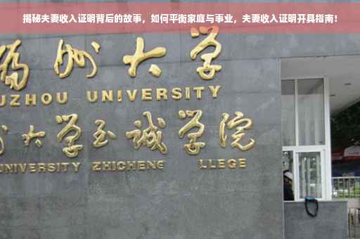 在现代社会中,夫妻收入证明成为了越来越多场合的必备文件,它不仅关乎家庭的经济状况,更体现了夫妻双方在事业与家庭中的共同努力,本文将深入探讨夫妻收入证明的重要性,并分享如何平衡家庭与事业的双赢局面,让我们一起探讨这个话题吧!