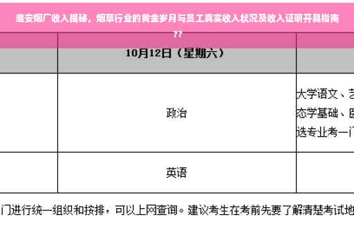 摘要:淮安烟厂收入证明备受关注,揭示了烟草行业的繁荣时期及员工实际收入状况。本文将探讨淮安烟厂的收入证明如何开具,同时深入了解烟草行业的黄金时代,以及员工在这个行业的真实收入情况。