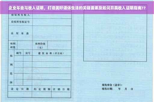 在当今社会,随着经济的发展和人口老龄化的加剧,养老问题越来越受到人们的关注,企业年金作为一种重要的养老保障制度,为职工提供了除基本养老保险外的额外保障,而收入证明作为申请企业年金的重要依据,其意义不可忽视,本文将详细介绍企业年金与收入证明的相关知识,帮助大家更好地了解这一制度,为未来的退休生活做好充分准备。