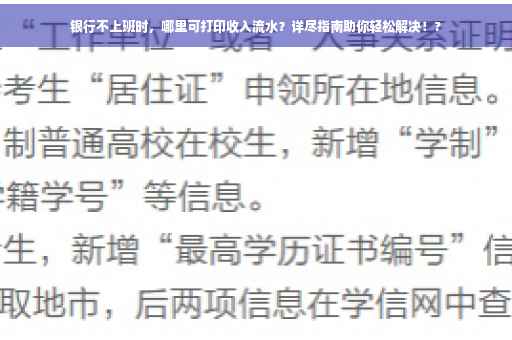 通过以上指南,希望您在银行不上班的情况下也能顺利打印收入流水,在生活中遇到类似问题时,请保持冷静,根据实际情况选择合适的方法解决问题。