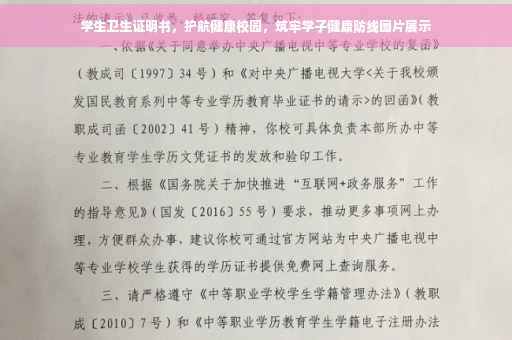 摘要:学生卫生证明书旨在护航健康校园,保障学生的身体健康。这是一项重要的措施,通过卫生证明来确保学生身体健康状况良好,预防疾病在校园内的传播。这也是共筑学子健康防线的重要环节,保障学生能够安心学习,提高学习效率和生活质量。相关学生卫生证明书的图片可作为宣传资料,提高学生对卫生证明的重视程度。