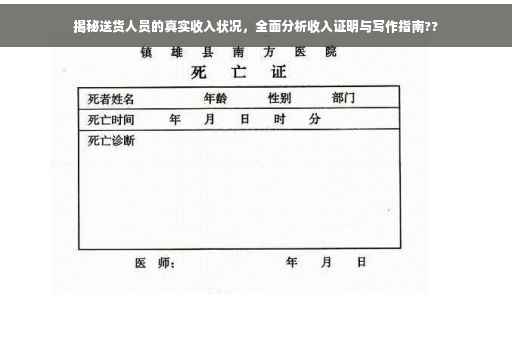 摘要:本文将深入探讨送货人员的真实收入状况,为你呈现一份全面的收入证明分析。通过详细解读送货人员的收入来源、收入水平以及影响因素,揭示送货人员的收入真相。本文还将介绍如何撰写送货人员的收入证明,为你提供实用的建议和参考。