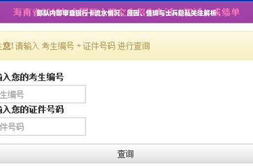 在实际操作中,部队对于银行卡流水的查询有着严格的规定和流程,只有在涉及重大经济问题或案件的情况下,才会进行流水查询,查询过程遵循法律程序和部队规定,由专业人员操作,确保查询行为的合法性和准确性,同时最大限度地保护官兵的隐私权。