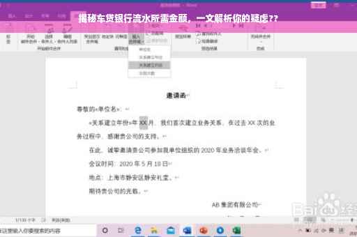 随着汽车消费市场的繁荣,越来越多的人选择通过贷款购买车辆,在车贷申请过程中,银行流水作为评估个人信用状况的关键依据,其重要性不言而喻,车贷银行流水到底需要多少呢?本文将为您详细解析。