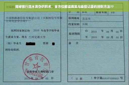 摘要:本文介绍了银行流水真伪识别术,全方位解读如何辨别真实与虚假银行流水记录。通过掌握相关技巧,可以帮助读者准确识别银行流水的真伪,保障个人财产安全。文章将详细解析银行流水的结构和内容,同时介绍常见的真伪识别方法,包括核对流水细节、关注流水规律等方面。