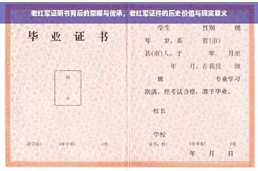 在当代社会,老红军证明书不仅是对过去的一种纪念,更是对当下的一种启示,我们应该铭记历史,铭记那些为国家、为人民做出巨大贡献的英雄们,我们也应该学习老红军们的精神,将这种精神应用到实际生活中去,为国家的繁荣和人民的幸福做出自己的贡献。