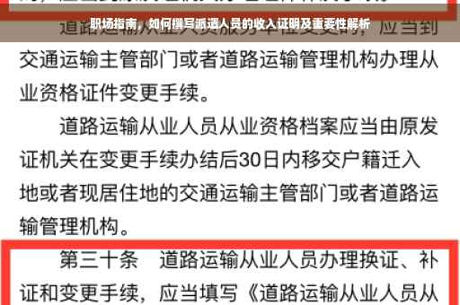 在当今社会,随着经济的快速发展和全球化的趋势,越来越多的企业开始采用派遣员工的方式来满足其业务需求,这些派遣人员为企业提供了灵活的人力资源,同时也为派遣员工自身带来了丰富的就业机会,本文将聚焦于收入证明派遣人员这一职场群体,探讨他们的生存状态、面临的挑战以及应对策略。