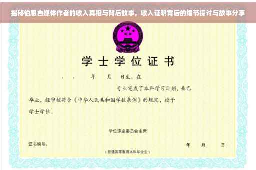 以伯恩的收入证明为例,假设他的月收入为XX元(具体数字根据实际情况填写),其中广告收入占比XX%,付费内容收入占比XX%,商务合作收入占比XX%,衍生品收入占比XX%,这些数据反映了他在各个领域的表现以及收入来源的多样性,虽然自媒体作者的收入相对较高,但背后的付出与努力也是巨大的。