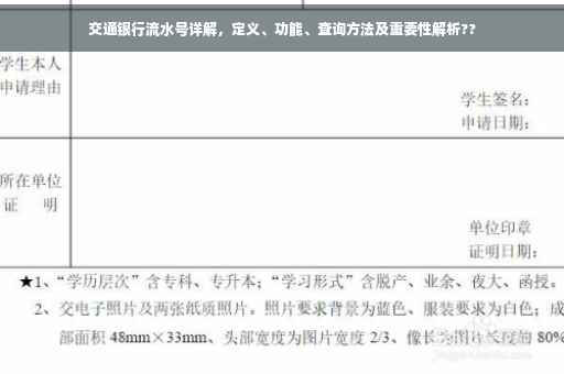 交通银行流水号是银行业务的重要组成部分,对于客户和银行都具有重要意义,通过本文的解析,希望广大用户能更好地理解和应用这一业务标识,保障自身权益,提高金融安全意识。