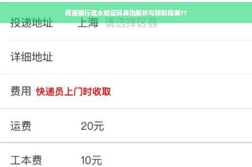 摘要:本文将介绍如何解析招商银行流水验证码的真伪。通过辨别流水验证码,可以帮助用户确保所获取的招商银行流水记录真实有效。本文将提供辨别真伪流水验证码的方法,以确保用户能够安全、准确地获取银行流水信息。