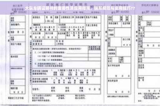 在当今社会,车辆已成为人们出行的重要工具,而大队车辆更是企业、机构或团体进行集体出行、公务活动等的必备交通工具,随着车辆数量的不断增加,对于大队车辆的管理和证明也显得尤为重要,本文将围绕“大队车辆证明书”这一主题展开,介绍其重要性、实际应用及撰写要点,以帮助读者更好地了解和使用大队车辆证明书。