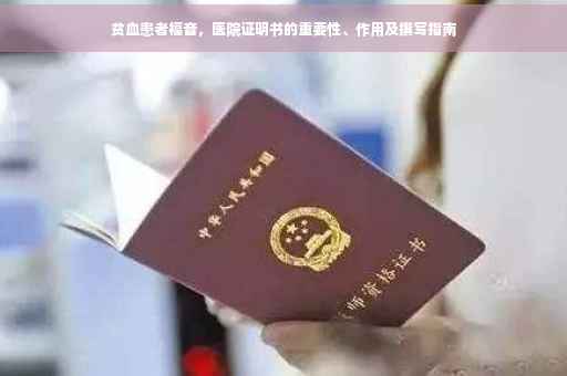 摘要:贫血患者福音,了解贫血医院证明书的重要性及作用至关重要。贫血医院证明书是对患者贫血状况的专业评估,有助于确认贫血程度及原因,指导治疗方案。证明书撰写应包含患者基本信息、诊断依据、贫血类型与程度,以及医生建议等内容。正确书写贫血医院证明书,有助于患者获得有效治疗,改善生活质量。