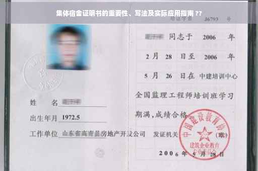 集体宿舍证明书的作用不容忽视,它不仅证明了集体宿舍的合法性,保障了租住者的权益,还为管理方提供了管理依据,在某大型企业中,由于有了集体宿舍证明书,企业在处理员工住宿纠纷时有了有力的法律依据,纠纷得到了有效解决,集体宿舍证明书还为租住者提供了法律保障,避免因宿舍问题引发的纠纷,在实际应用中,集体宿舍证明书不仅是租房合同的重要参考依据,还可以在办理居住证、银行办理贷款等方面发挥重要作用,了解集体宿舍证明书的作用和内容至关重要,我们将详细介绍集体宿舍证明书的作用、内容以及如何申请和使用这一重要文件。
