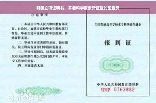 科研立项证明书是科研项目成功获得批准的重要凭证,它标志着科研项目的正式启动,包含了项目名称、负责人、成员、立项时间、项目经费等关键信息,这份证明书是科研人员经过反复论证、精心策划后取得的成果,也是科研项目实施过程中的关键依据。