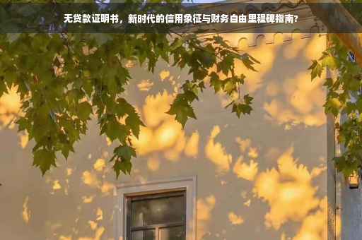 无贷款证明书是新时代个人信用的有力证明,也是个人财务自由的新里程碑,拥有无贷款证明书意味着个人信用得到了认可,财务状况透明,融资便捷,个人发展助力,无贷款证明书在个人财务规划中具有重要意义,可以帮助个人理性借贷、管理债务、优化资产配置以及风险管理,建议个人积极关注自己的信用状况,合理规划财务活动,努力获取无贷款证明书,实现个人财务自由。
