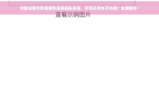 摘要:诊断证明书是医疗领域中的重要文件,具有证明患者病情、治疗方案及健康状况的作用。其重要性体现在为患者提供医疗依据、保障患者权益以及便于医疗跟踪。诊断证明书并非全是手写,也有电子版本。实际应用中,手写诊断证明书更具个性化,能详细记录病情;电子版本则方便存储和传输。两者各有优势,应根据实际情况选择使用。