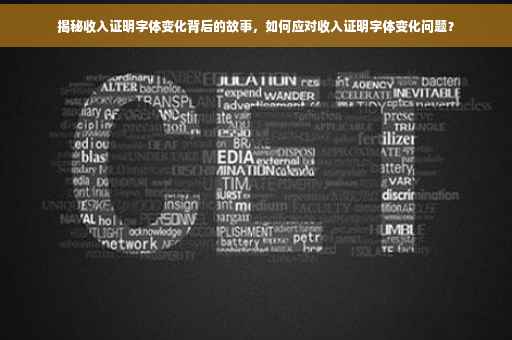 摘要:收入证明中的字体变化可能涉及到重要信息的确认与核实。若发现字体变化,首先需核对证明中的关键信息是否真实无误。若有疑问或发现不实情况,应及时联系证明出具单位进行核实并重新开具正规证明。了解字体变化背后的原因,以防被误导。确保个人权益,谨慎处理收入证明。