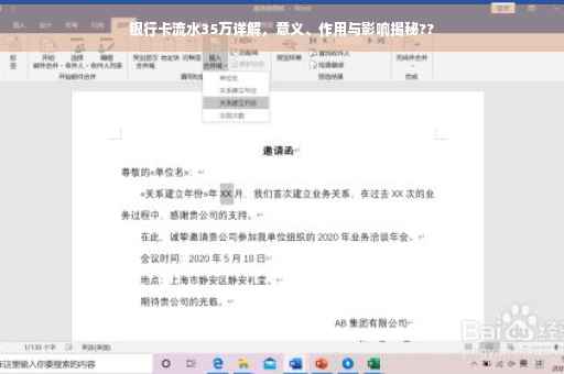 摘要:银行卡流水35万指的是银行账户内资金在一定时间内的总流水金额达到35万。这反映了账户持有人的经济实力和消费能力,对于个人信用评估、贷款申请等方面具有重要影响。高流水金额有助于提升个人信用评级,便于获取贷款、信用卡等金融服务。但同时,也需注意资金流动是否合理合法,避免潜在风险。