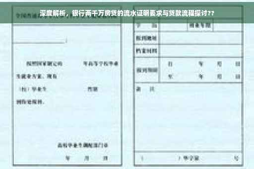 在楼市火热的当下,购房贷款已成为许多人实现安居梦想的重要途径,面对动辄数千万的房贷,不少人在申请贷款时对于银行的要求存在诸多疑问,尤其是是否需要提供流水证明,本文将围绕“银行两千万房贷是否需要流水”这一问题展开讨论,并深度解析银行房贷的流水要求及相关流程。