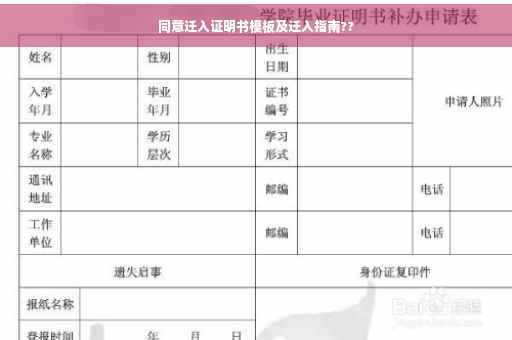 随着社会的快速发展和城市化进程的推进,人口迁移成为了一个普遍现象,在这个过程中,《同意迁入证明书》作为迁移过程中的重要文件,起到了证明个人或家庭对迁入地的认可及合法性的作用,本文将为大家详细介绍这份证明书的相关知识,帮助大家了解其作用、办理流程、注意事项等,以便顺利办理迁移手续。