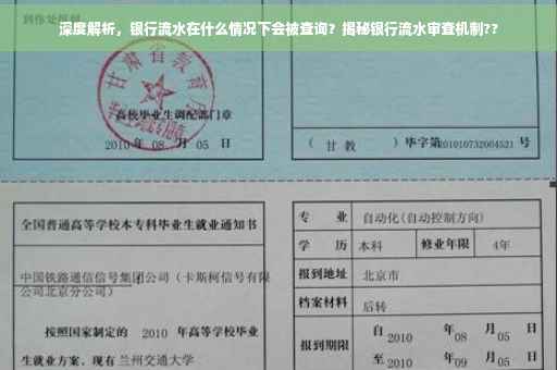 随着金融行业的快速发展,银行业务与我们日常生活紧密相连,其中银行流水作为个人和企业经济活动的重要记录,越来越受到人们的关注,本文将为您深度解析,在哪些情况下银行会查询个人或企业的流水记录,并帮助您更好地理解银行流水查询的相关情况。