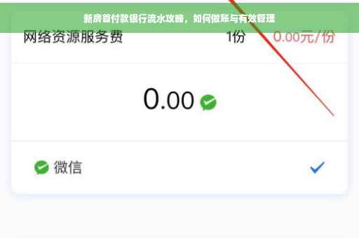 摘要:关于新房首付款银行流水攻略,做账流程十分重要。需明确银行流水是新购房首付款的重要证明材料,需真实记录资金流动情况。具体操作包括:通过银行转账方式支付首付款,确保流水账单清晰记录交易信息,并保留相关凭证。做账时,应准确分类记录支出与收入,注明时间、金额和交易对象。遵循这些步骤,能确保银行流水账单的合规性,顺利完成新房首付款的支付。