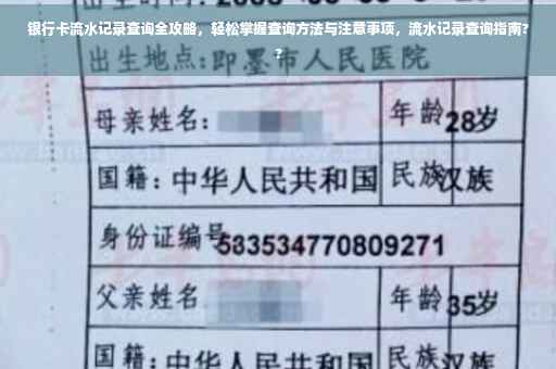 摘要:本篇全攻略详细介绍了银行卡流水记录查询的方法和注意事项。通过简单步骤,轻松掌握查询流程。注意事项包括保护个人隐私和账户安全,确保查询过程的真实性和准确性。遵循此攻略,轻松查询银行卡流水记录。